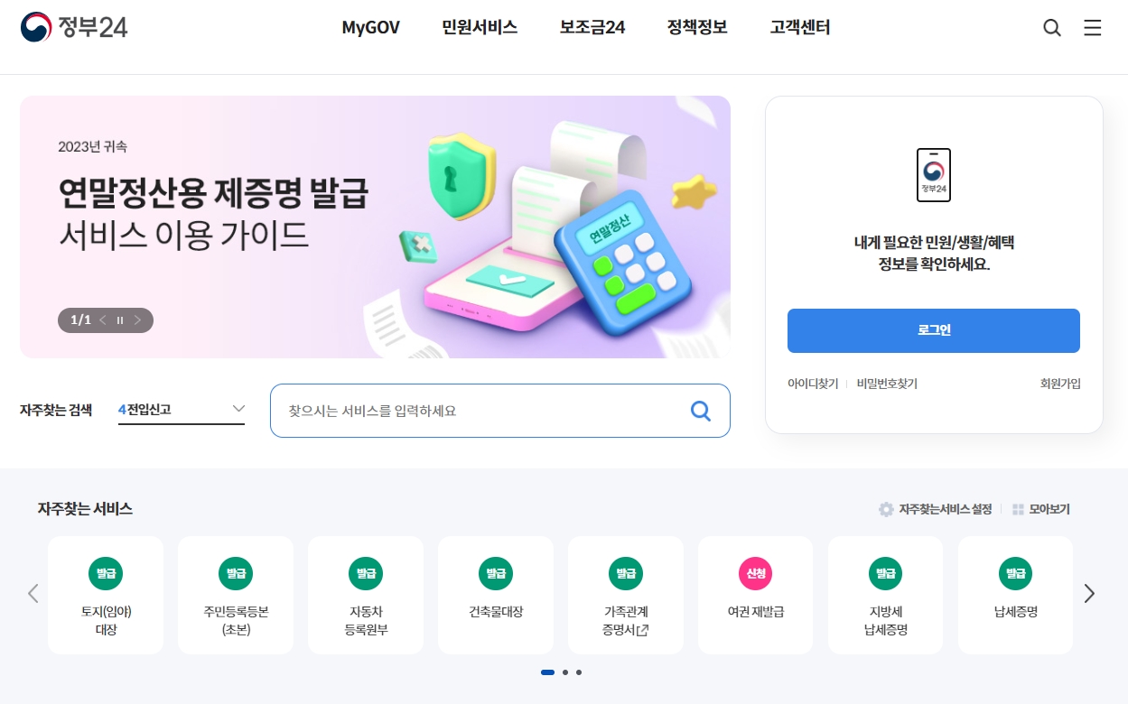 1. 정부24 홈페이지를 들어갑니다