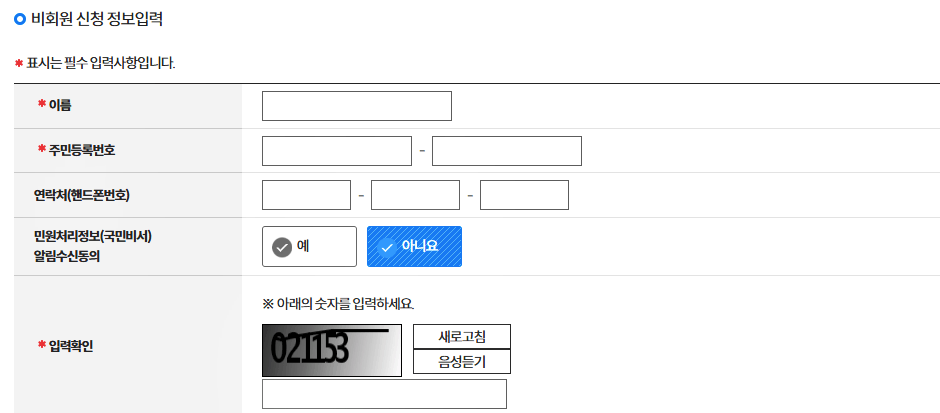 개인정보와 고유식별 정보를 수집에 동의해 주시고 정보 입력이 완료 되었습니다.