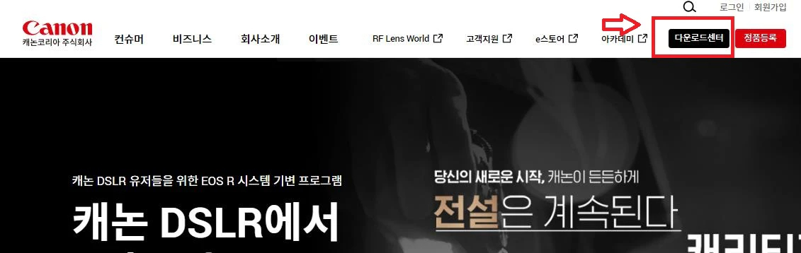 캐논 홈페이지 바로가기를 클릭 하시면 위에 화면이 바로 나오며 캐논 홈페이지 오른쪽 상단에 다운로드 센터 클릭 해도 됩니다.
