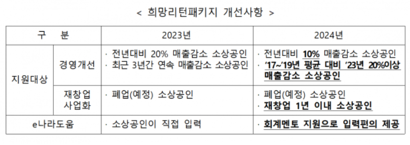 2024년 희망리턴 패키지에서 경영위기를 겪고 있거나 폐업한 소상공인 재기 지원을 위해서 정부 지원 사업을 한다고 27일에 발표 발표 하였습니다. 소상공인 패키지 지원을 통해 폐업이나 폐업 예정 으로써 소상공인에게 재창업 및 초기창업 발판이 의 기회가 제공이 됩니다