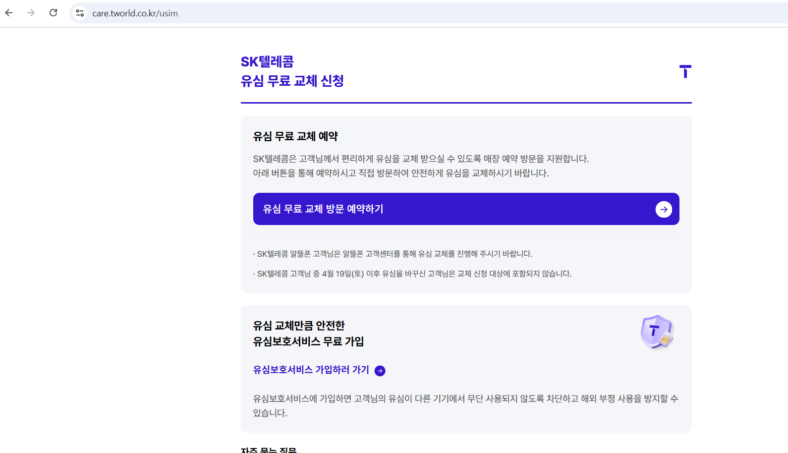 1. 유심 무료 교체 예약 방법