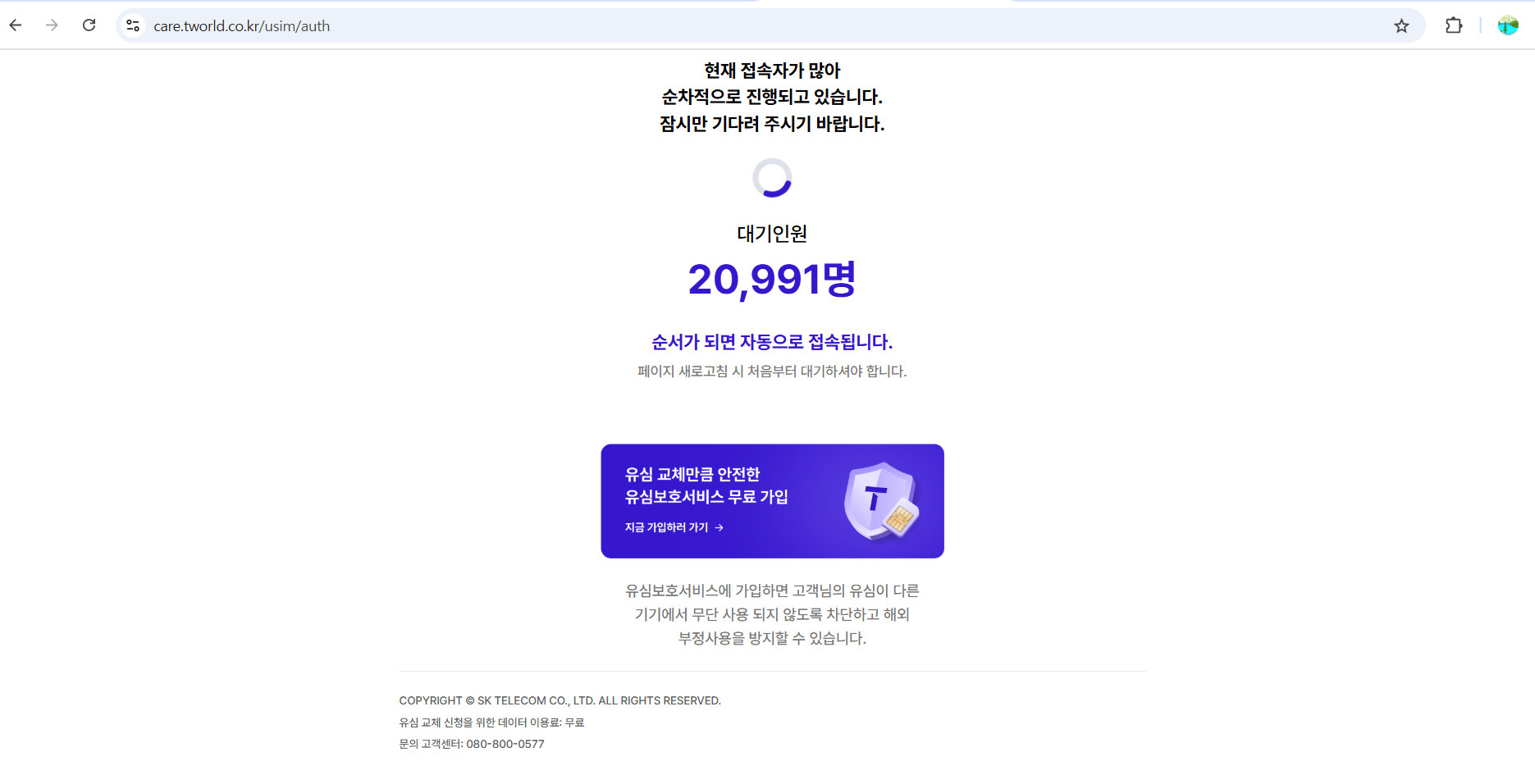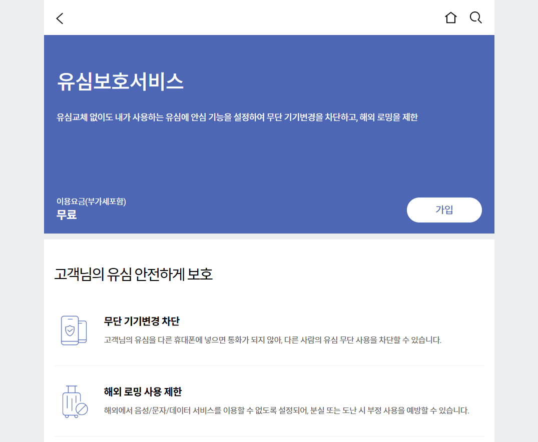 유심보호 서비스는 고객센터에서 유심보호 서비스가 가능합니다. 지금 현재 고객센터도 통화가 계속 지연이 되고 있어서 유심 보호 서비스도 현재 홈페이지에서 접속해서 가입이 가능합니다.